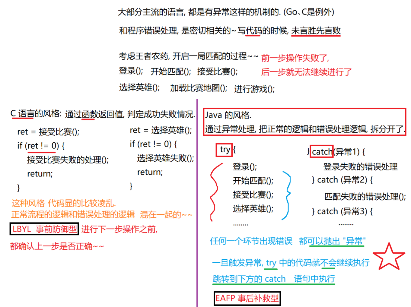 EAFP: 先操作,遇到问题再处理,事后认错型。"It's Easier to Ask Forgiveness than Permission" 事后获取原谅比事前获取许可更容易