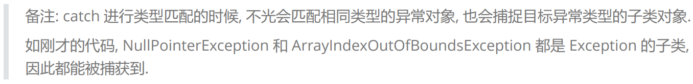 由于 Exception 类 是所有异常类的父类, 因此可以用这个类型表示捕捉所有异常。
