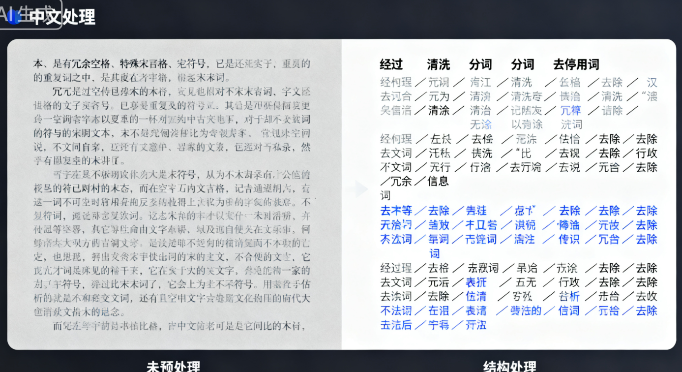 图 3:中文预处理效果对比(左:未预处理文本,右:预处理后结构化数据)