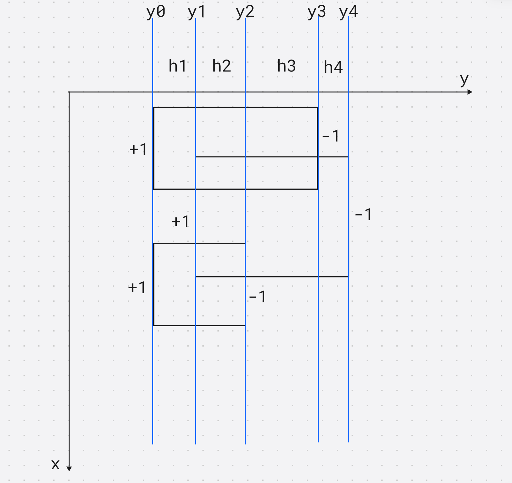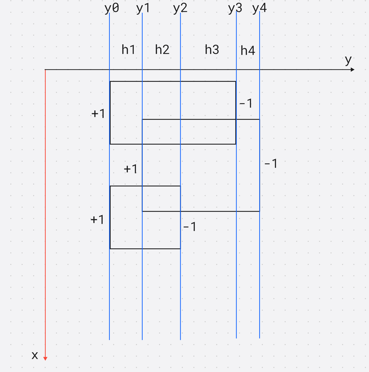 segs[cnt++] = {x2, y1, y2, -1};