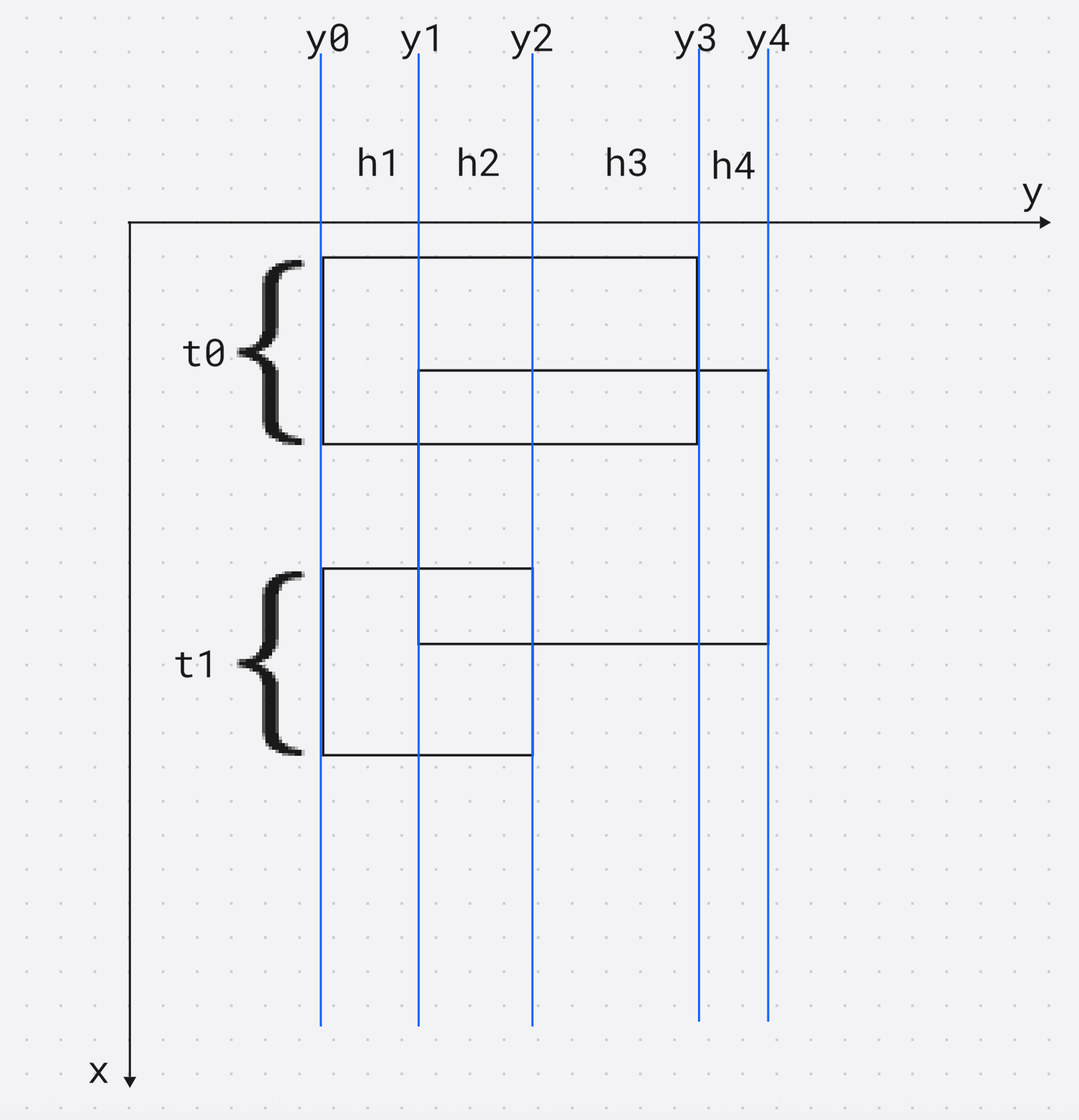 设 h 1 = t 0 + t 1 h_1= t_0 + t_1 h1=t0+t1, 同理 h 2 h_2 h2就是下一段的 x x x的差值, 那么总的覆盖面积 就是