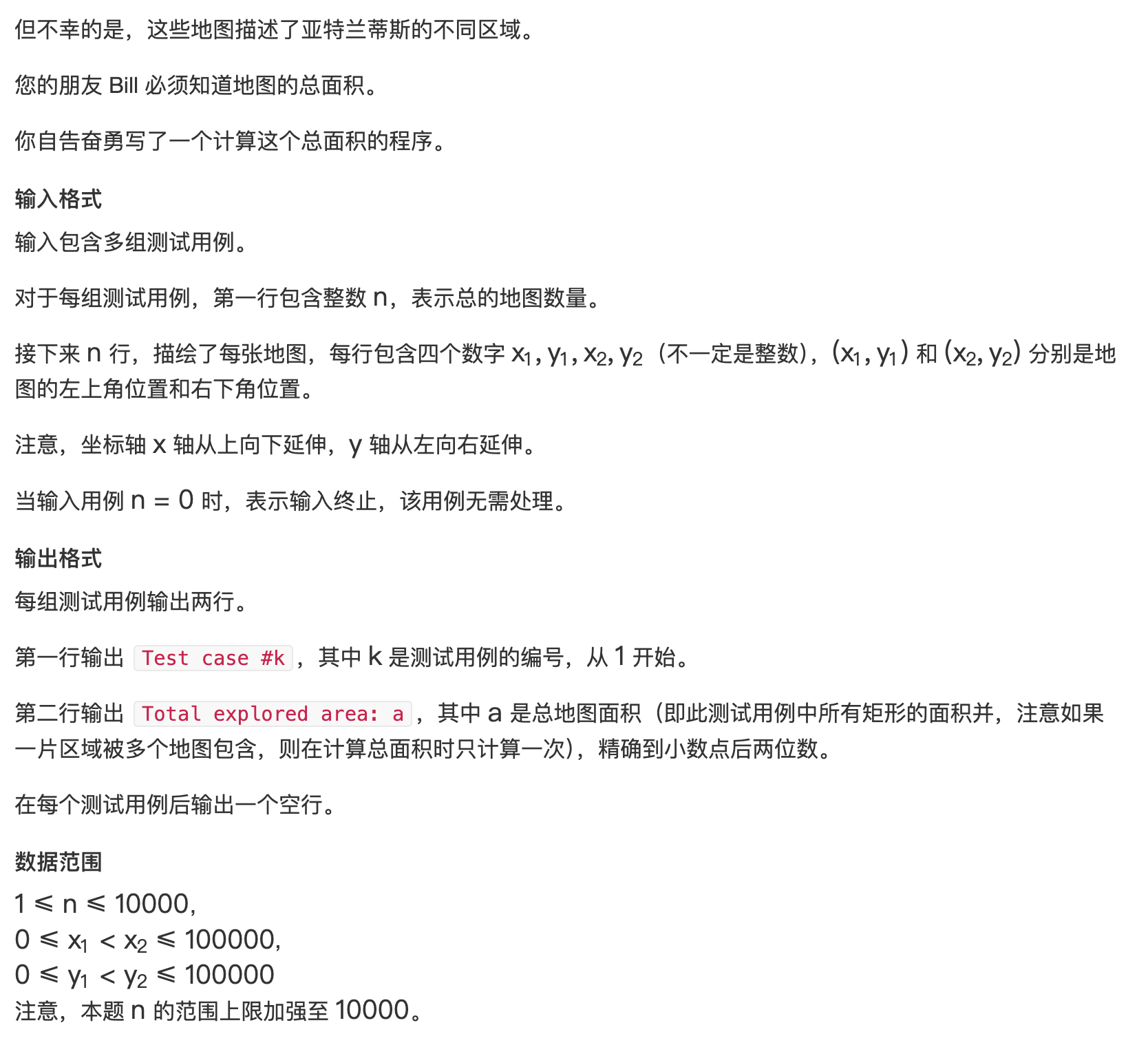 printf("Total explored area: %.2lf\n\n", ans);