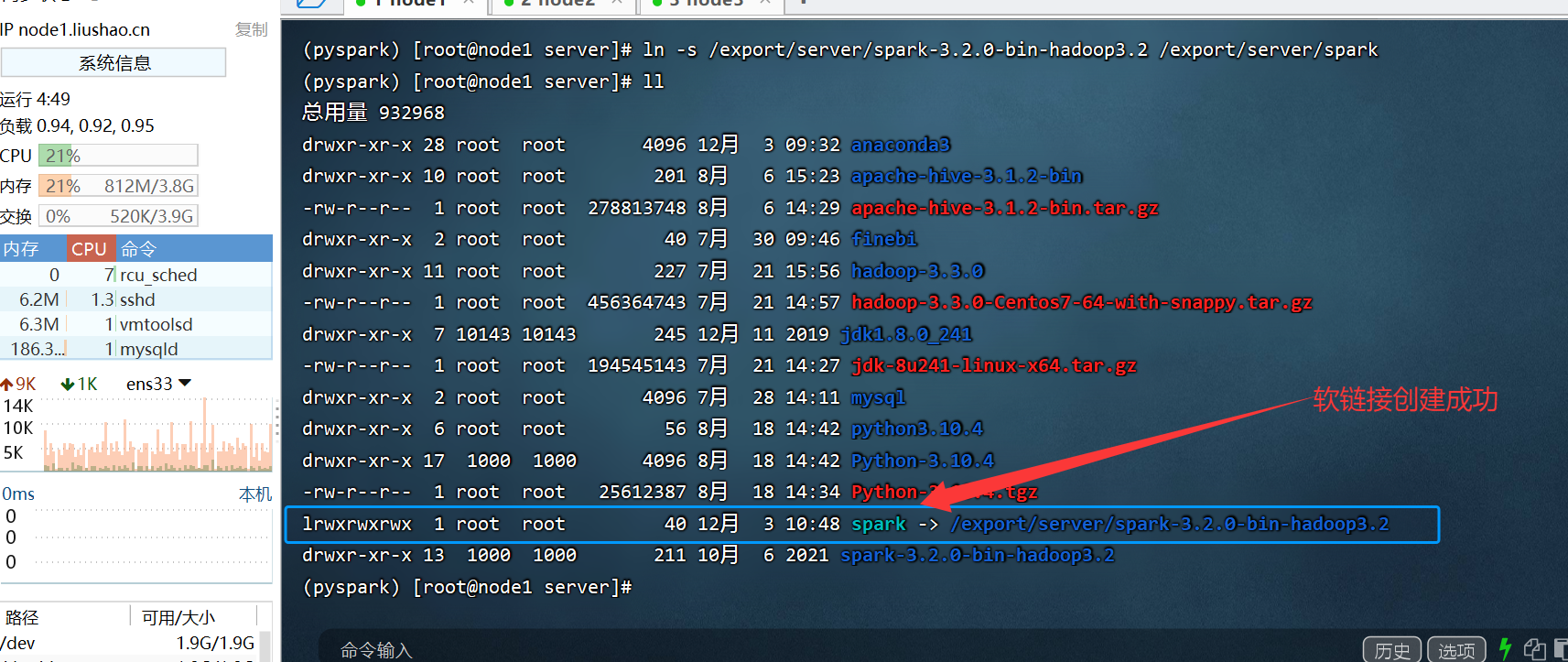 ln -s /export/server/spark-3.2.0-bin-hadoop3.2 /export/server/spark