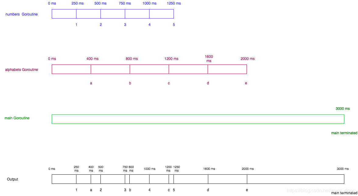 2)如果希望运行其他 Go 协程,Go 主协程必须继续运行着。如果 Go 主协程终止,则程序终止,于是其他 Go 协程也不会继续运行。