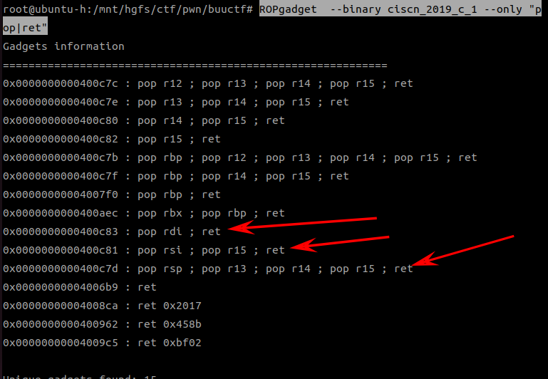 pop_rdi_ret=0x400c83 #使用ROPgadget找的pop_rdi_ret地址