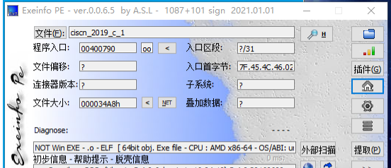 可以看到是64位程序,并且开启了NX保护