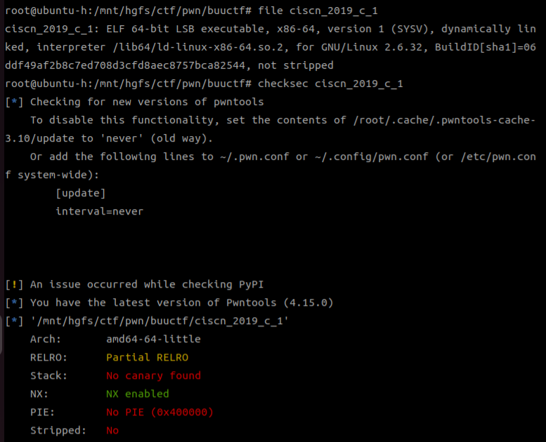 checksec ciscn_2019_c_1