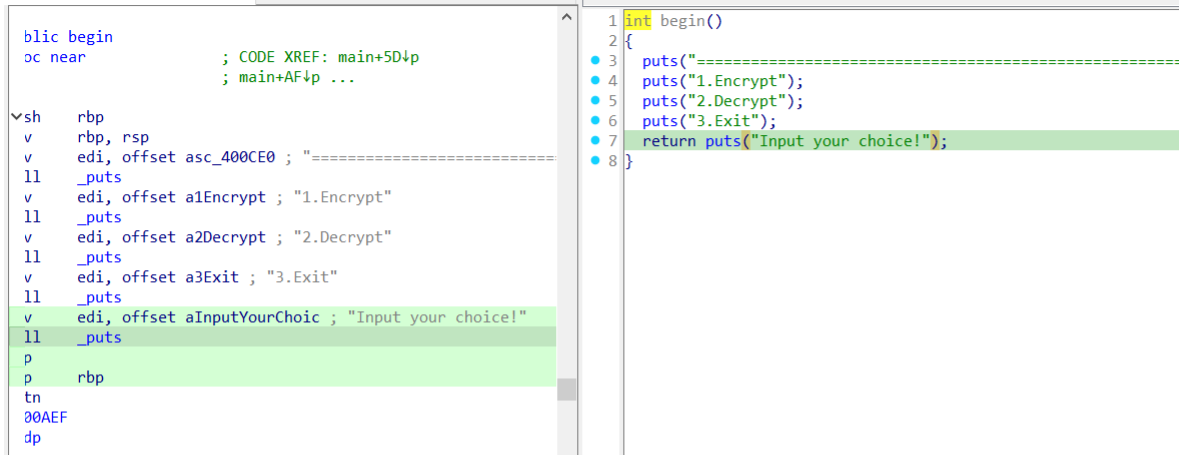 可以看到这里使用了2个函数begin和encrypt,追踪查看