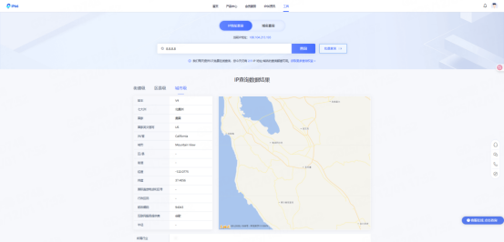 页面将显示该IP所属国家、省份、城市、运营商等信息。