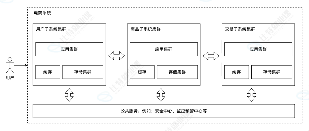 2. 将上面各个业务各个集群拆分为更细的微服务, 每个微服务都是一个独立可运行的模块, 由不同团队运行和维护, 最后通过以写公共组件如服务注册/发现中心, 网关等实现相互之间的调用关联