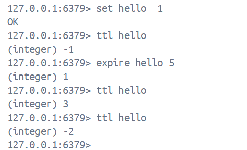 2. 两个特殊值: -1 表示没有设置过期策略, 一般指永久存在, -2 表示key不存在