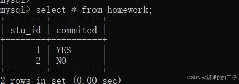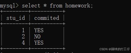 还有一个作业表homework,也有学生id字段stu_id,是否提交作业字段commited;