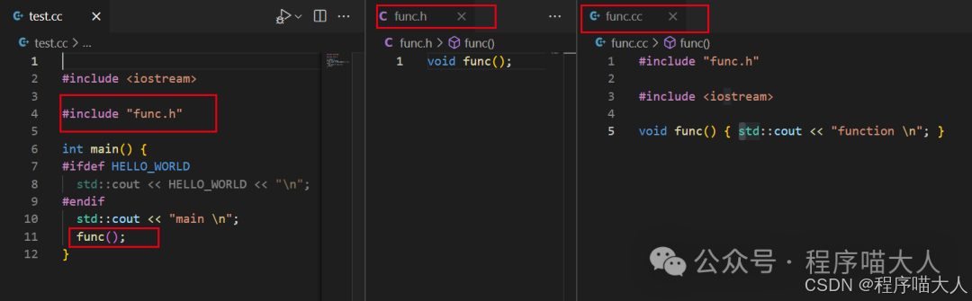 在另一个单独的头文件func.h中声明func,同时在另一个源文件中定义它的实现,这种程序怎么编译?