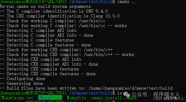为什么有cmake ../然后make,因为make命令是通过Makefile来构建的,它只识别Makefile。而cmake ..就是识别上一级目录中的CMakeLists.txt然后在当前build目录中生成了一个Makefile,供make识别: