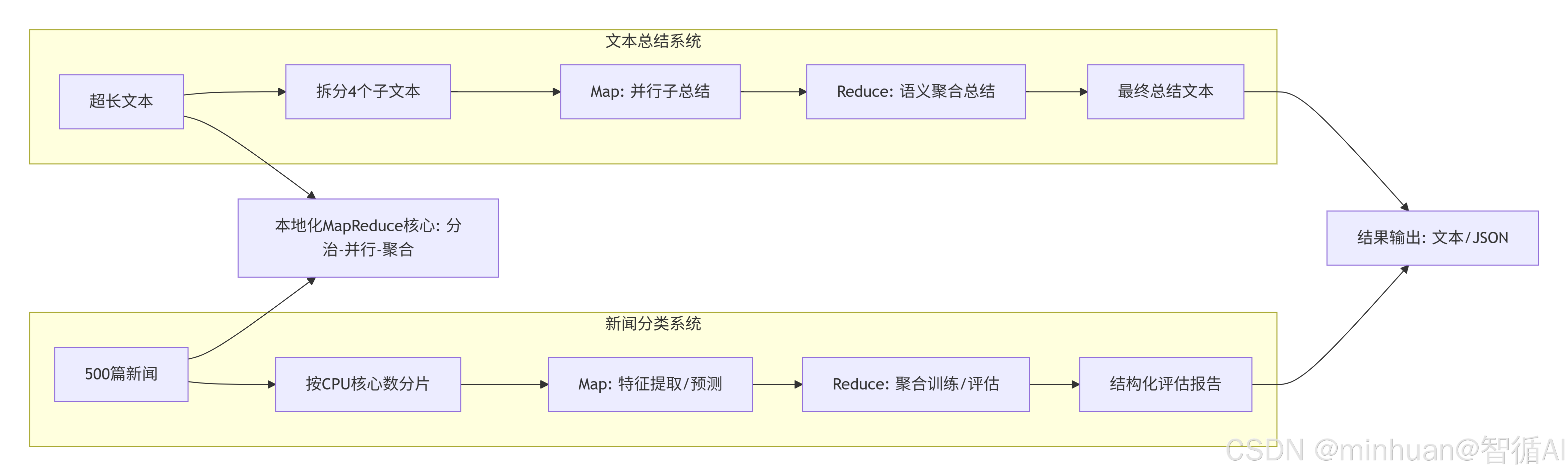 前期我们已经详细的介绍了MapReduce的基本知识,今天我们以 "Qwen1.5-1.8B 驱动的超长文本总结系统" 和 "BERT 驱动的大规模新闻分类系统" 为双核心案例,深度解析 MapReduce 在本地化大模型文本处理中的体现形式、核心作用与技术实现,梳理关键知识点与执行流程,为本地化处理大规模中文文本任务提供可复用的架构参考。