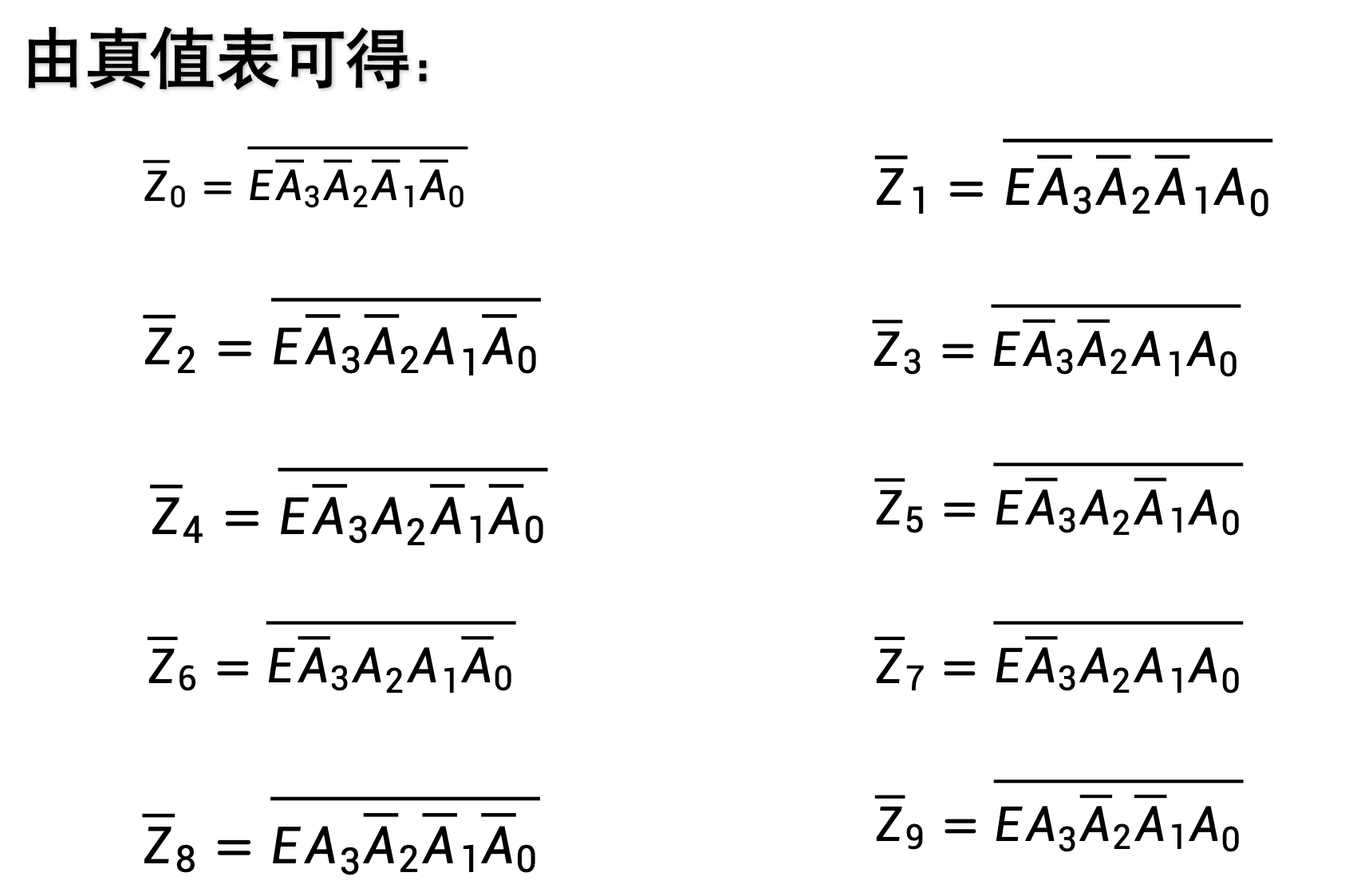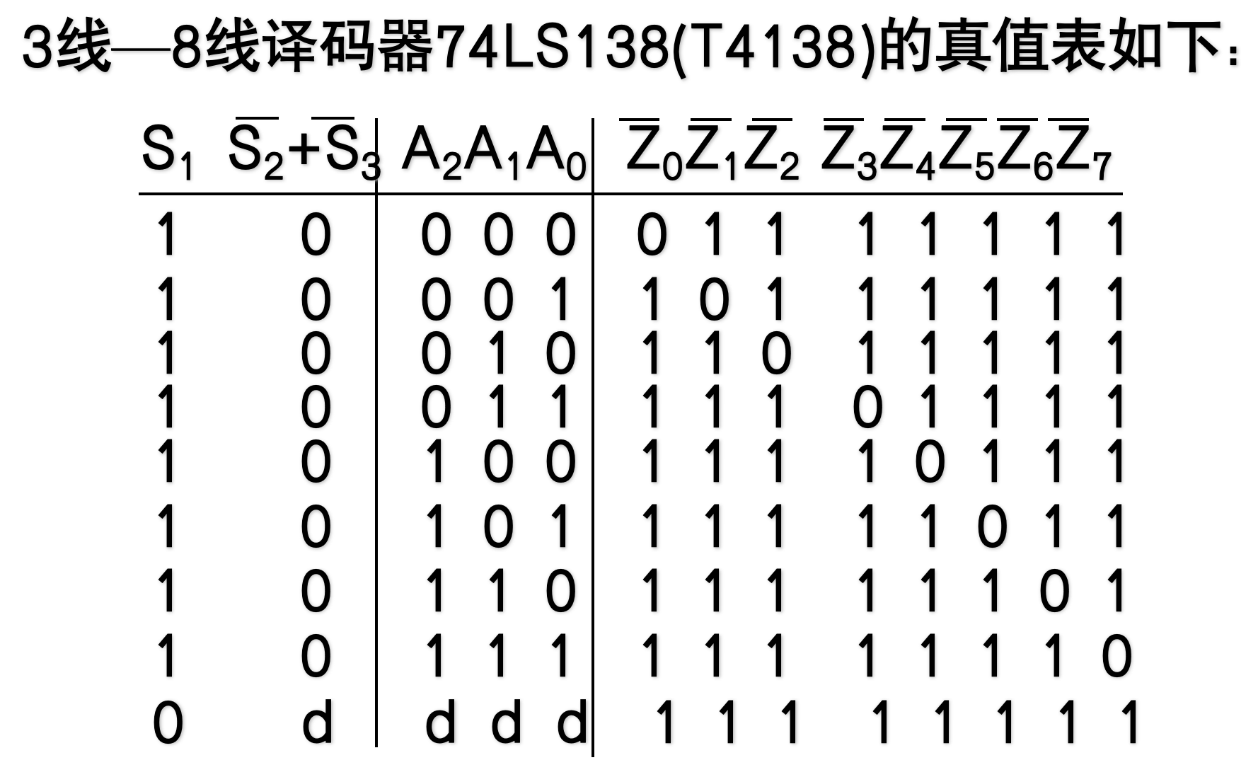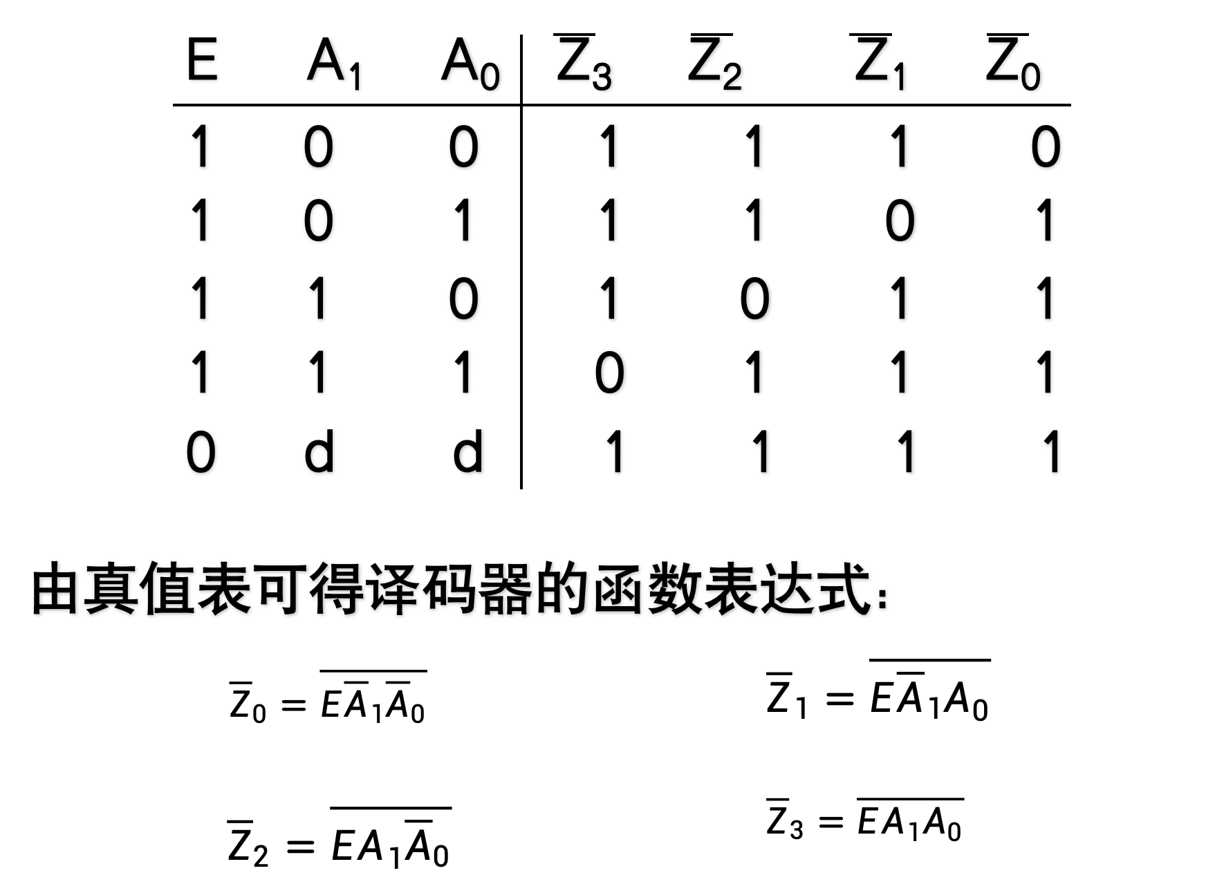 - 使能端E为"0"时,译码器被封锁,输出全为"1" 。