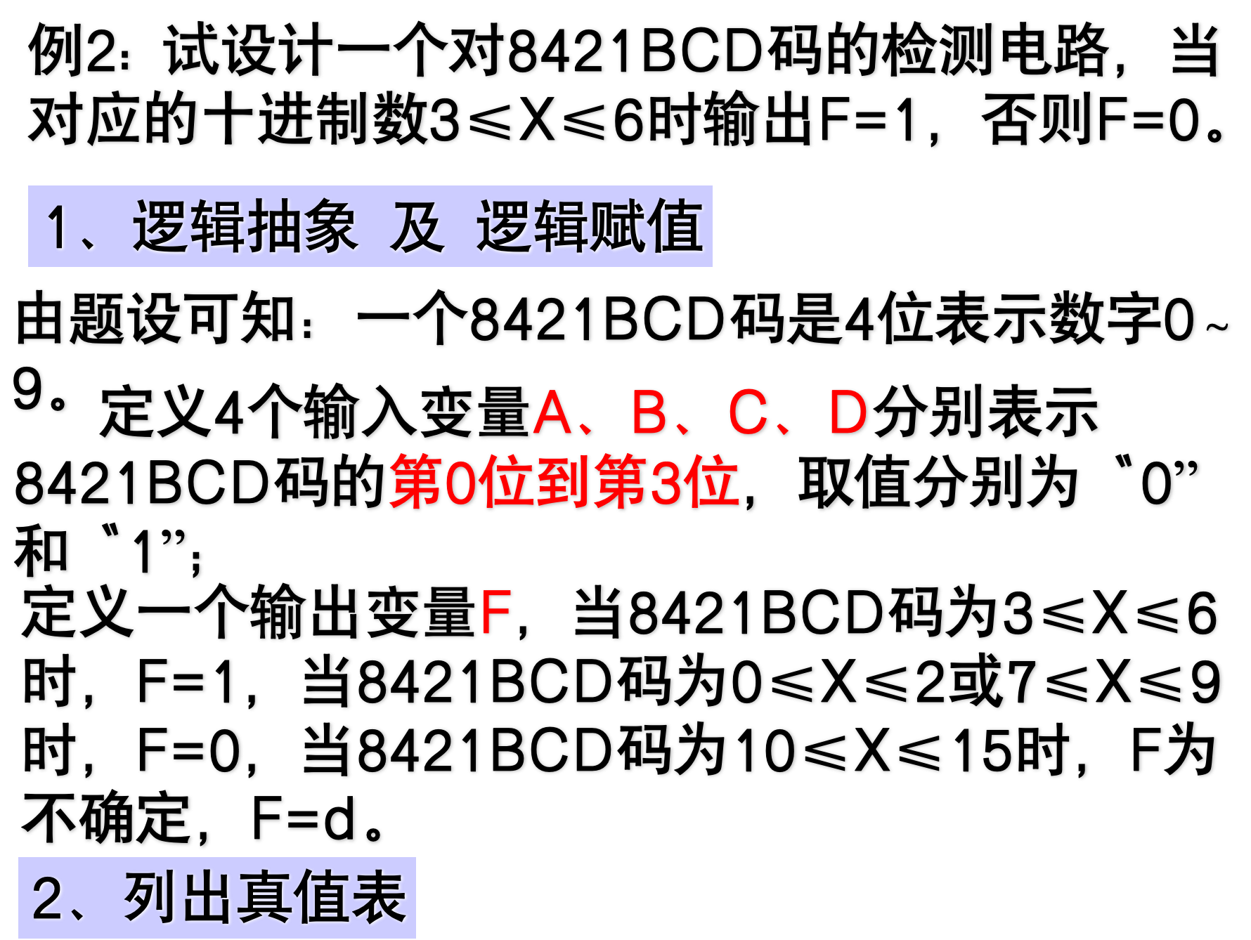 - 定义逻辑状态的含义,即以"0"、"1"分别表示输入和输出的不同状态。