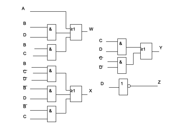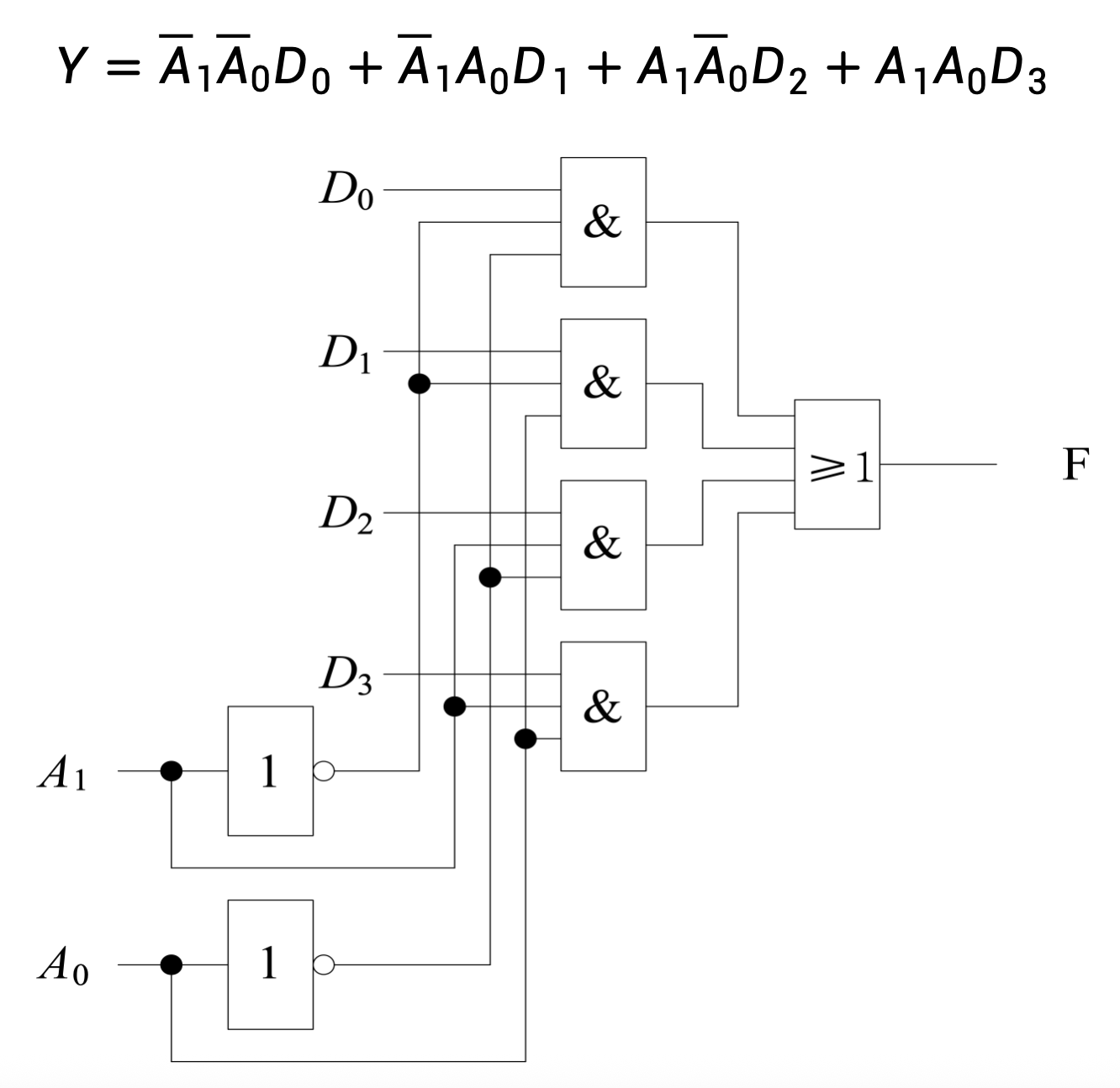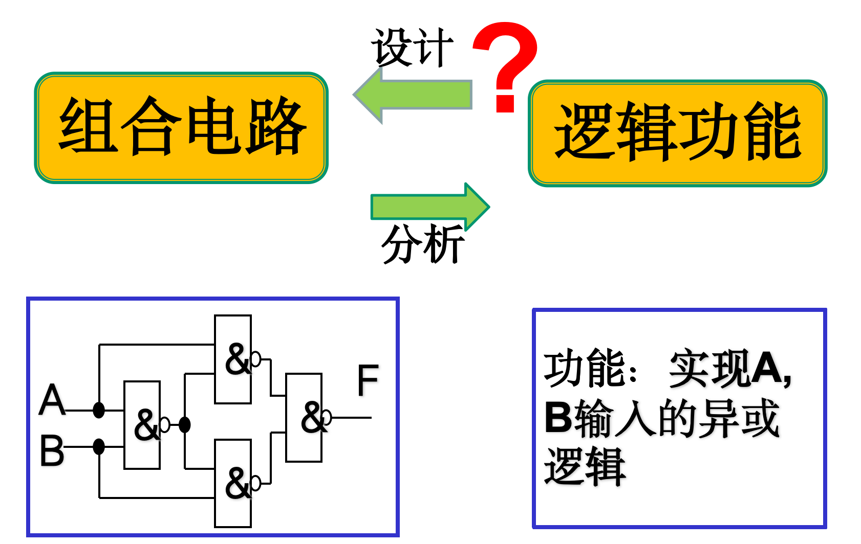 - 组合逻辑电路 :任意时刻的输出仅仅取决于该时刻的输入组合,而与输入信号作用前电路的原状态无关(与过去的输入无关)。