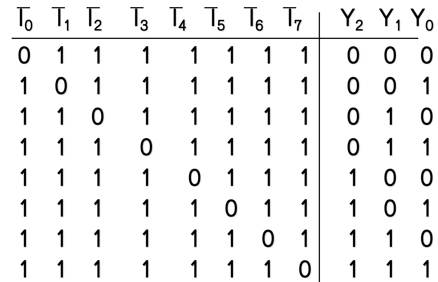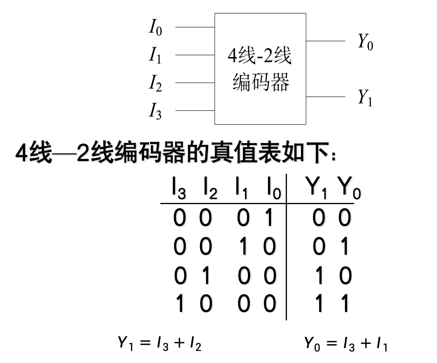 - 为了不使输出发生混乱而产生错误,普通编码器规定,在任何给定的时刻,n个输入端中只能有一个有效,其余n-1个都不能出现。