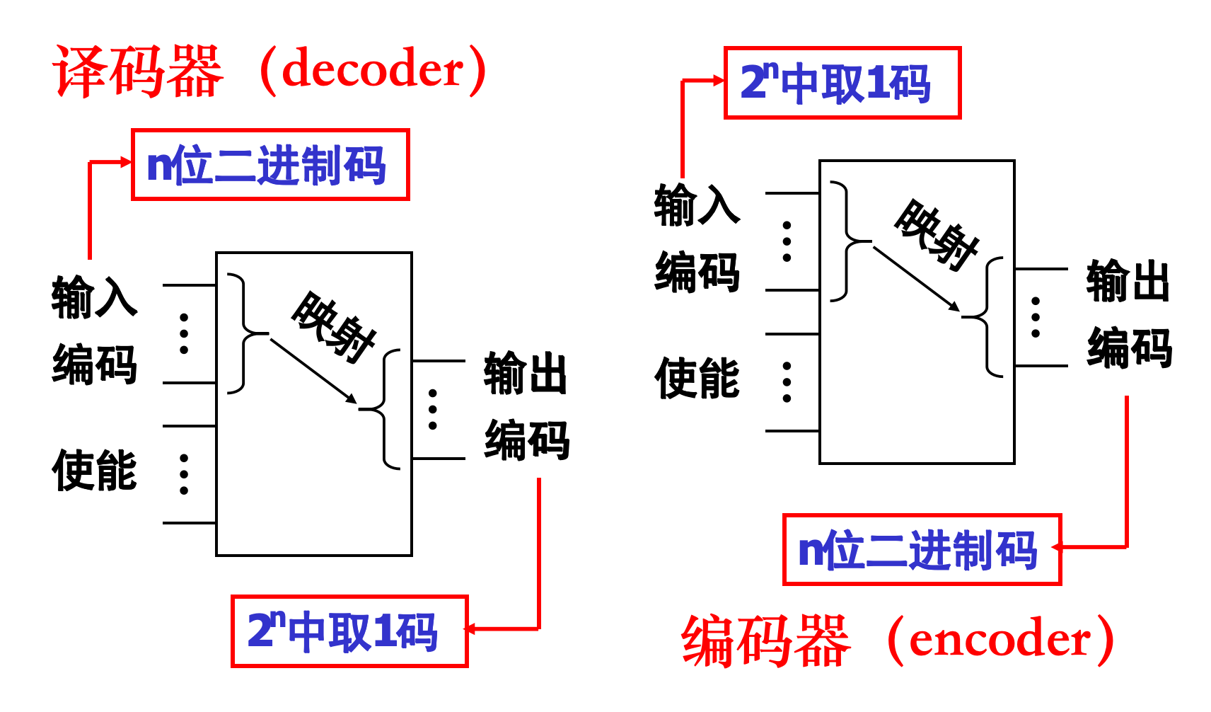 - 译码是编码的逆过程,其功能是将具有特定含义的不同二进制代码"翻译"出来。