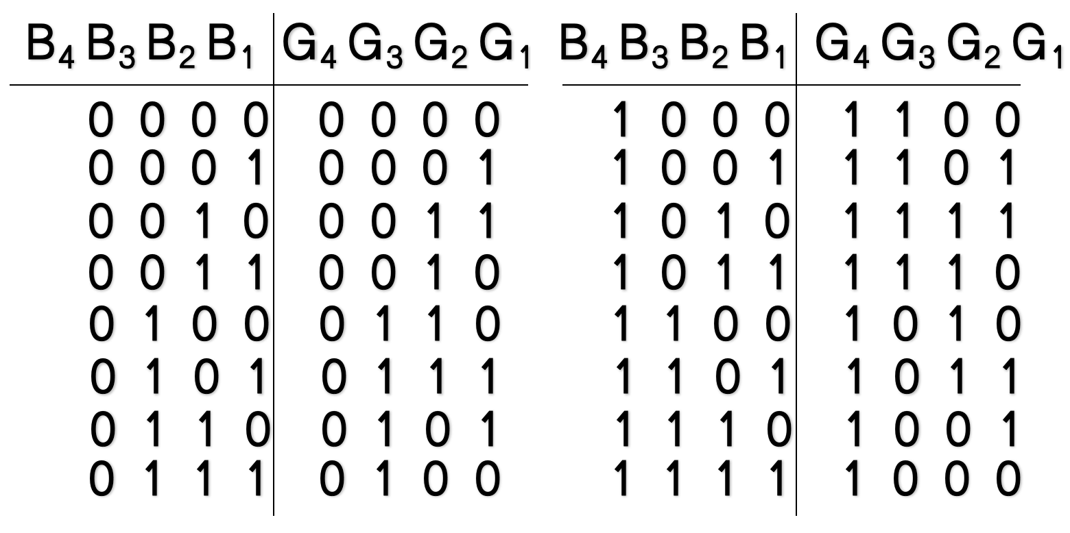 - 最大特点:相邻两个数字的二进制表示只有一位不同
