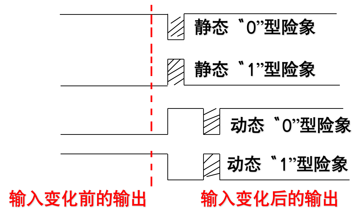 若在输入变化而输出应该发生变化的情况下,输出在变化过程中产生的险象,称为动态险象。
