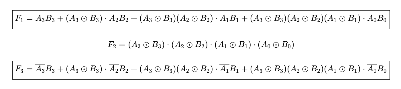- 输入是 A = A 3 A 2 A 1 A 0 A = A_3 A_2 A_1 A_0 A=A3A2A1A0, B = B 3 B 2 B 1 B 0 B = B_3 B_2 B_1 B_0 B=B3B2B1B0