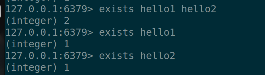 返回值为Key存在的个数,也就是我们可以一次性判断多个key是否存在,存在几个就返回几!