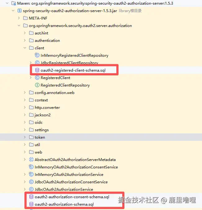Sping Authorization Server 为我们准备了自带表,位于他的jar包中: