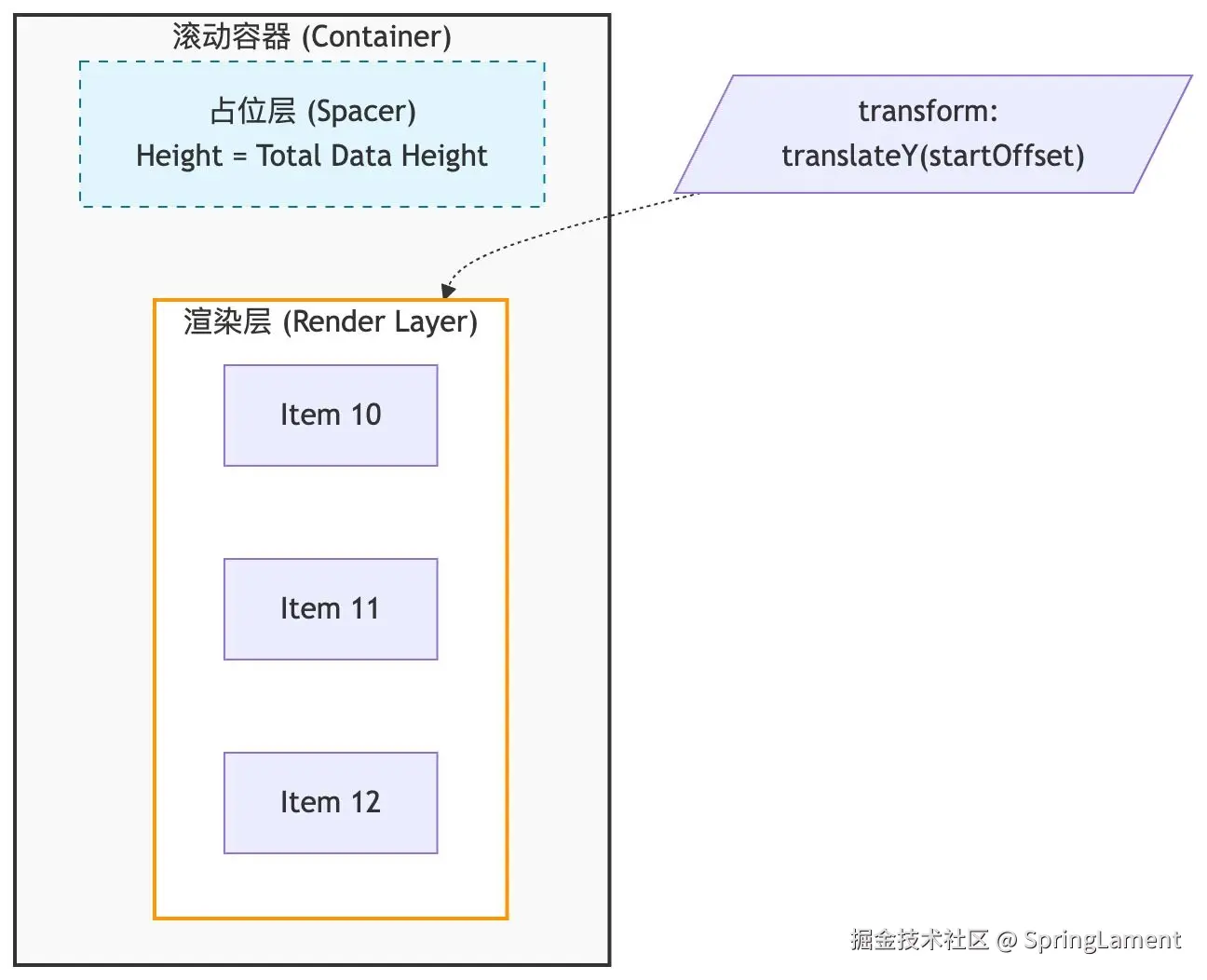 - 占位层:高度等于所有列表项的总高度,用于形成正常的滚动条