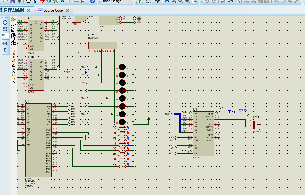 4.23.1基于8086的电子琴,8086的电子音调系统,8253的OUT0作为扬声器输出口