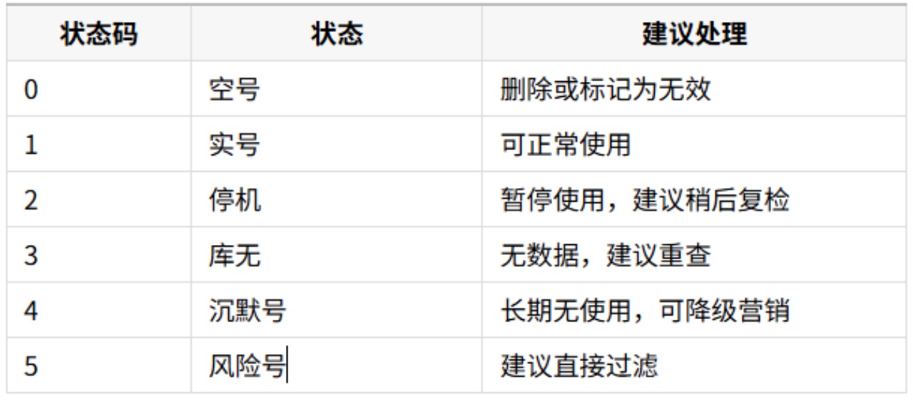 根据 data.status 值判断手机号状态,决定是否计费、过滤或继续使用。