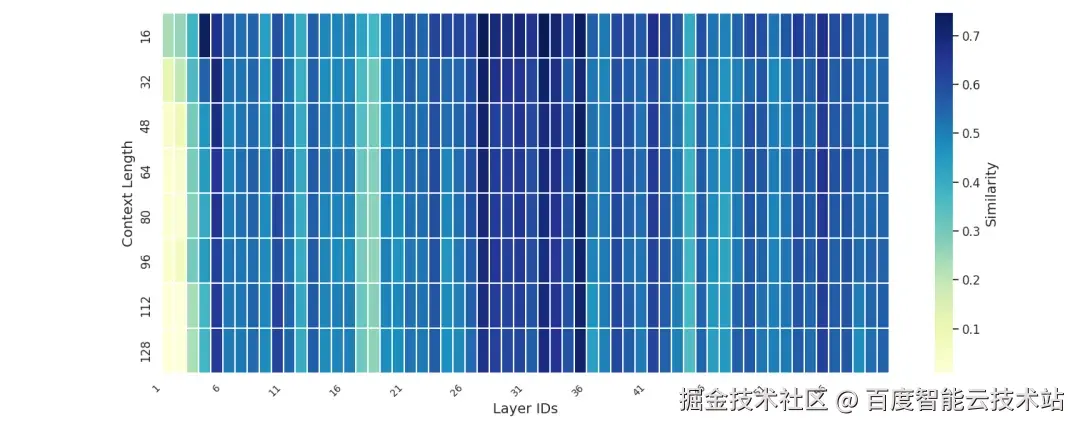 图 2. Inter-Layer Similarity 在不同上下文长度中的统计