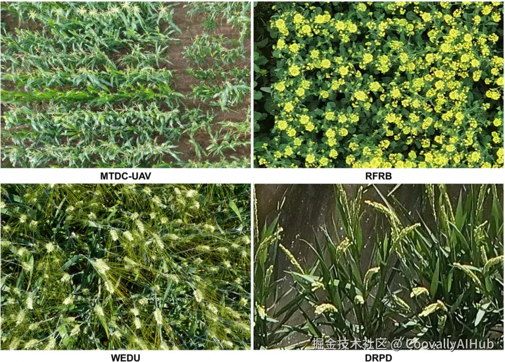 这些数据集涵盖了不同的植物种类、生长环境、图像质量和目标密度,能够全面评估模型的泛化能力。