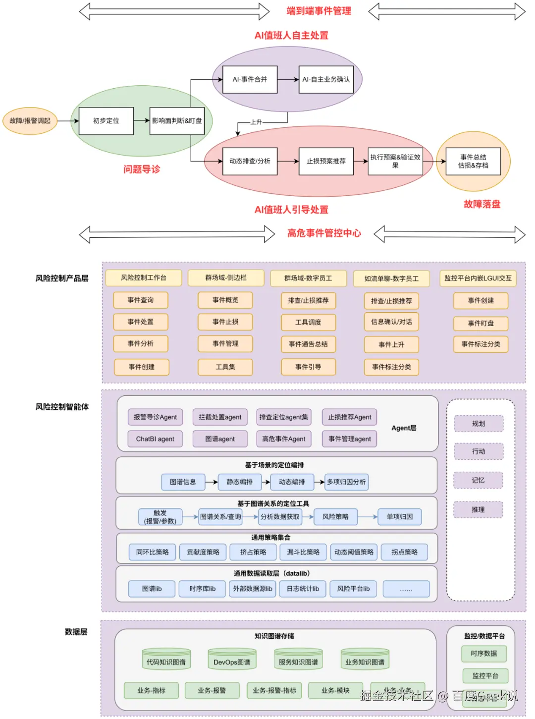 RCS Agent(AI值班人) :融合领域模型与领域知识,打造端到端 AI 值班人,具备自主 / 协同式的智能定位与处置能力,实现 "应快尽快"。RCS围绕问题发生到止损全环节,构建报警分类导诊、排查定位、止损等多个环节的智能化控制能力,实现对问题整体损失预期控制,托管全流程风险控制过程。