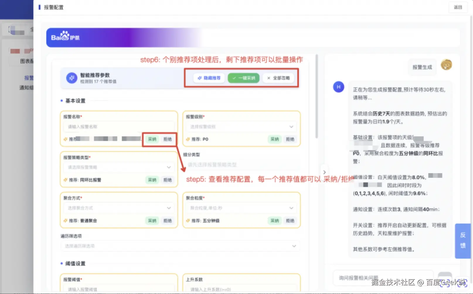(4)如何进行智能降噪:分析单个报警 、关联报警、多个报警的异常特征、关系及盯盘情况来综合判断是否需要进行报警通知,并结合风险程度、影响范围、时效性等解决无效打扰、报警淹没等问题,平衡质效。