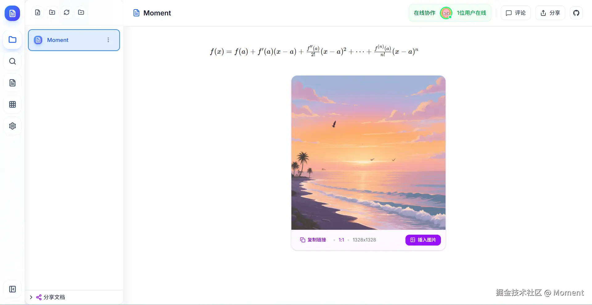 写了半年的协同文档终于有点像样了,目前新增数学公式、RAG、续写,划词评论,创建组织和 @ 人等功能。