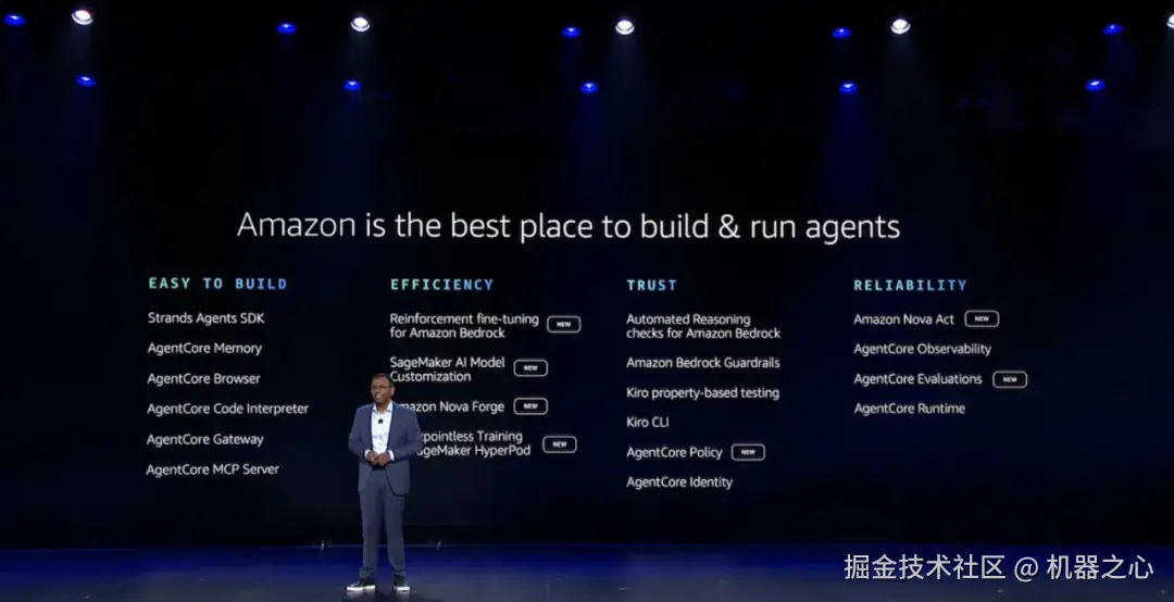 这还只是新时代的冰山一角。今天凌晨,亚马逊云科技一年一度的 re:Invent 大会上,全世界都见证了「云计算一哥」一个又一个重量级新发布,大部分都是面向 Agentic AI 的。