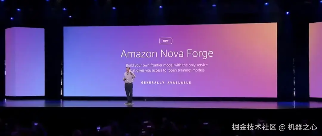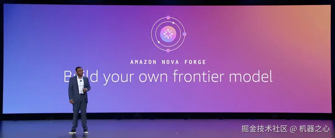 第三是数据。亚马逊云科技推出的全新服务 Amazon Nova Forge,提出了开放训练模型的概念。