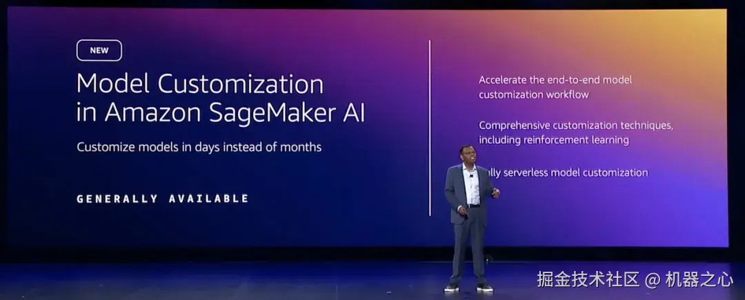 在他看来,能够高效执行特定任务的定制化高质量模型将成为主流。为此,亚马逊云科技推出了一系列旨在降低 AI 模型定制的复杂性和成本,同时「无需大量博士参与」的工具。