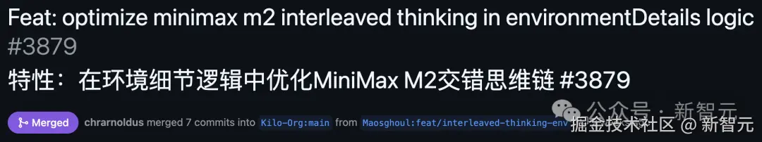 - 「Kilo Code」:针对这个新兴的云端 IDE,MiniMax 提交了代码,优化了环境细节与工具结果的合并逻辑,解决了多轮对话中状态丢失的问题。
