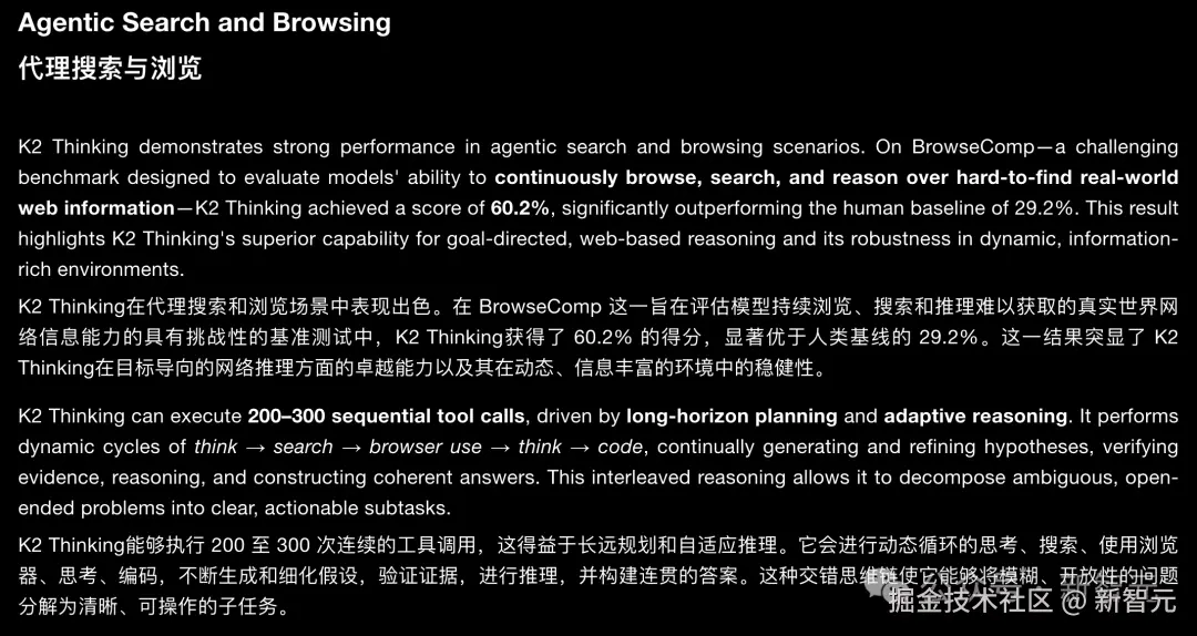 Kimi K2 Thinking 也支持了交错思维链,进而得以 Agentic 能力上突飞猛进。