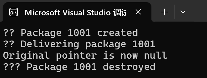 Package(int id) : id_(id) { std::cout << "📦 Package " << id_ << " created\n"; }