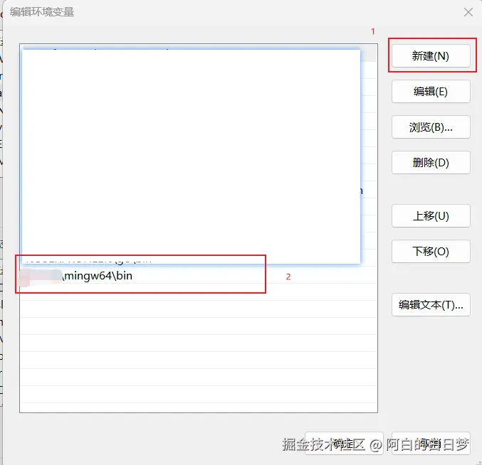 mingw的解压缩包文件夹下的bin文件目录复制到新建的环境变量中去,然后一直点击保存