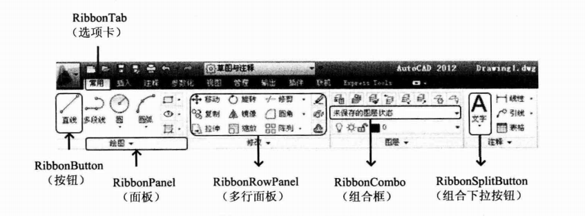 学如逆水行舟,不进则退。 愿自己不忘初心,坚持积累。感谢大家的支持。本篇博客主要是学习Ribbon界面,关于Ribbon界面的内容十分多,从今天开始一步步学习。在我看来,Ribbon 界面必然是CAD软件未来的主流趋势。对于绘制圆、直线这类单一基础操作,界面形式的影响或许并不明显,但在处理综合性复杂任务时,其优势便尤为突出 ------ 这类操作往往无法一步完成,需要多步骤、多命令的协同配合。而用户大多难以熟记所有快捷键,此时Ribbon界面通过模块化的功能布局,搭配直观且具有明确辨识度的图标,能让用户快速定位所需功能,极大降低操作门槛,同时带来更流畅、更友好的使用体验。
