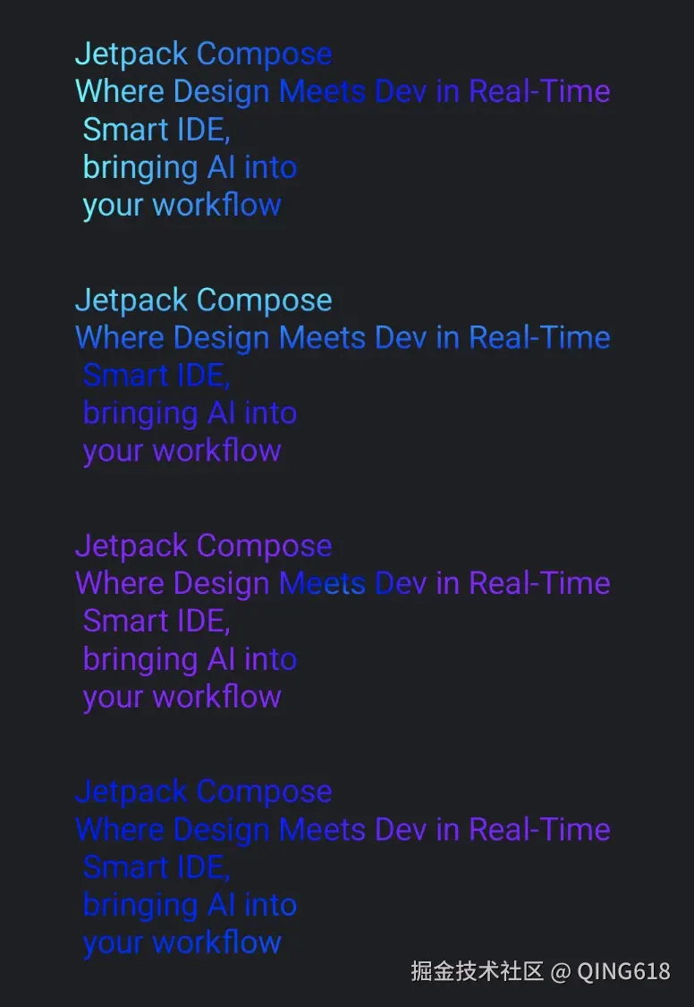 本文详细介绍了如何在 Jetpack Compose 中实现文本渐变效果的方法,利用 Brush API提供的更符合 Compose 习惯用法的新方法,在 TextStyle 和 SpanStyle 中使用 Brush等,这使得为文本添加复杂的颜色变化变得前所未有的简单。
