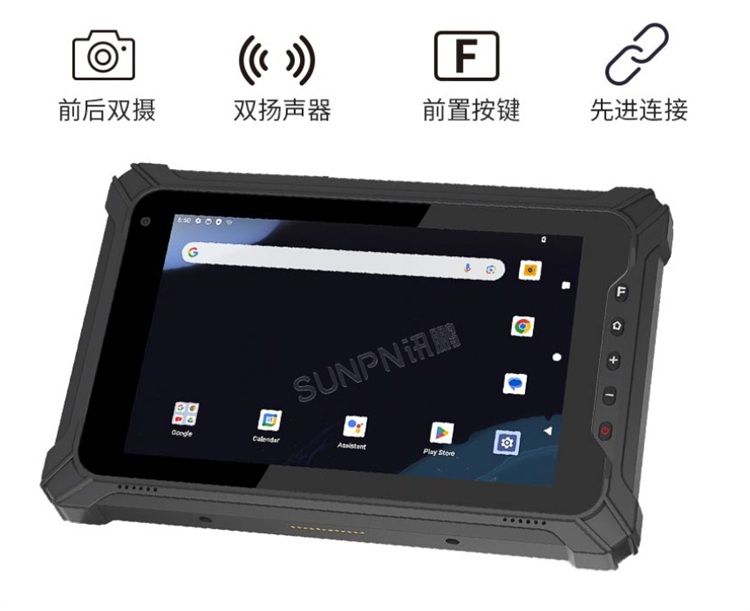 质量追溯常需拍照留存证据或查看图纸工艺。该设备配备800英寸TFT屏幕,拥有1920x1200高分辨率及550nits高亮度,画面清晰锐利,在强光下亦可视。500万前置与1300万后置自动对焦摄像头,能清晰捕捉物料及产品细节。高达38Wh的可拆卸电池支持长达9小时的续航,配合18W PE+2.0快速充电Type-C接口,真正做到"充的更快,用的更久",满足全天候轮班作业需求。
