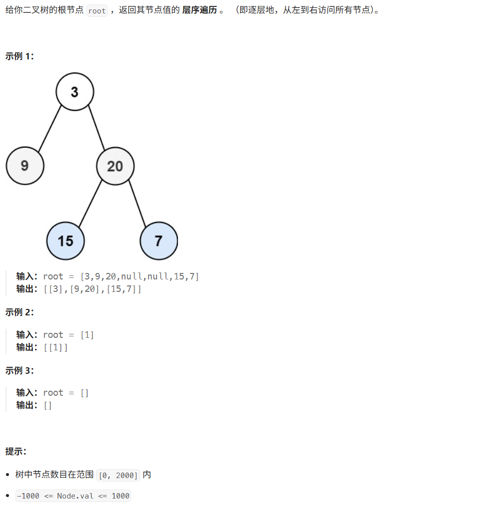 思路:递归法,每次递归向深度对应的数组添加节点值,再向左节点和右节点递归。迭代法,使用双向队列存储每层的节点,记录每层每个节点的值;记录一个节点的值后,把其左节点和右节点(如果有)加到双向队列,再删除双向队列里的原节点,以此循环直到双向队列为空。