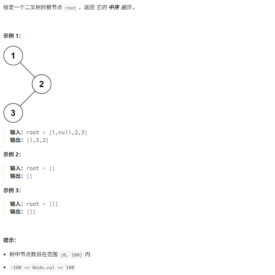 思路:递归法,中序遍历;迭代法,左子数不断入栈,然后不断出栈顶,如果有右子数便也压入栈,不然就不断出栈。