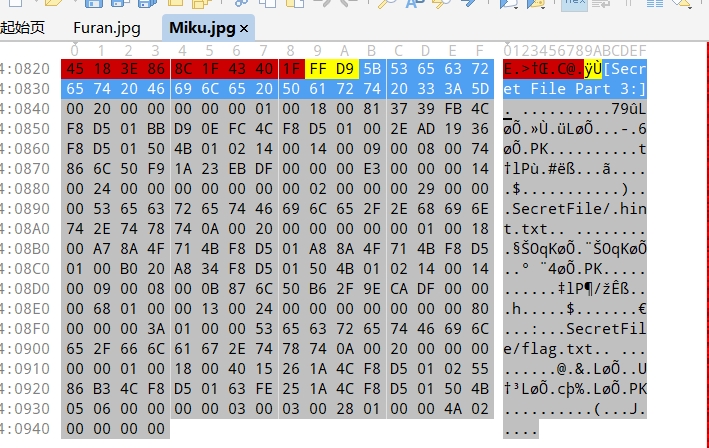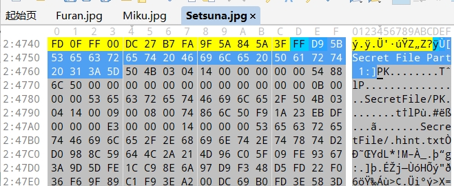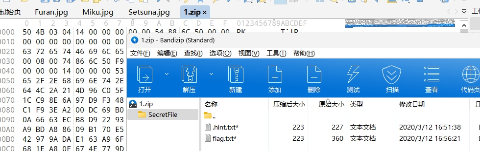 123按顺序复制重组为一个新文件,由于文件头 50 4b 03 04为压缩包文件,将文件保存为1.zip